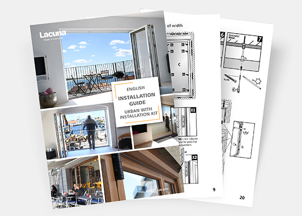 The folding door is supplied with instructions for installing the specific door. Read the guide carefully before installation to ensure it is fitted correctly the first time. See here how to handle and install the folding door correctly as standard.