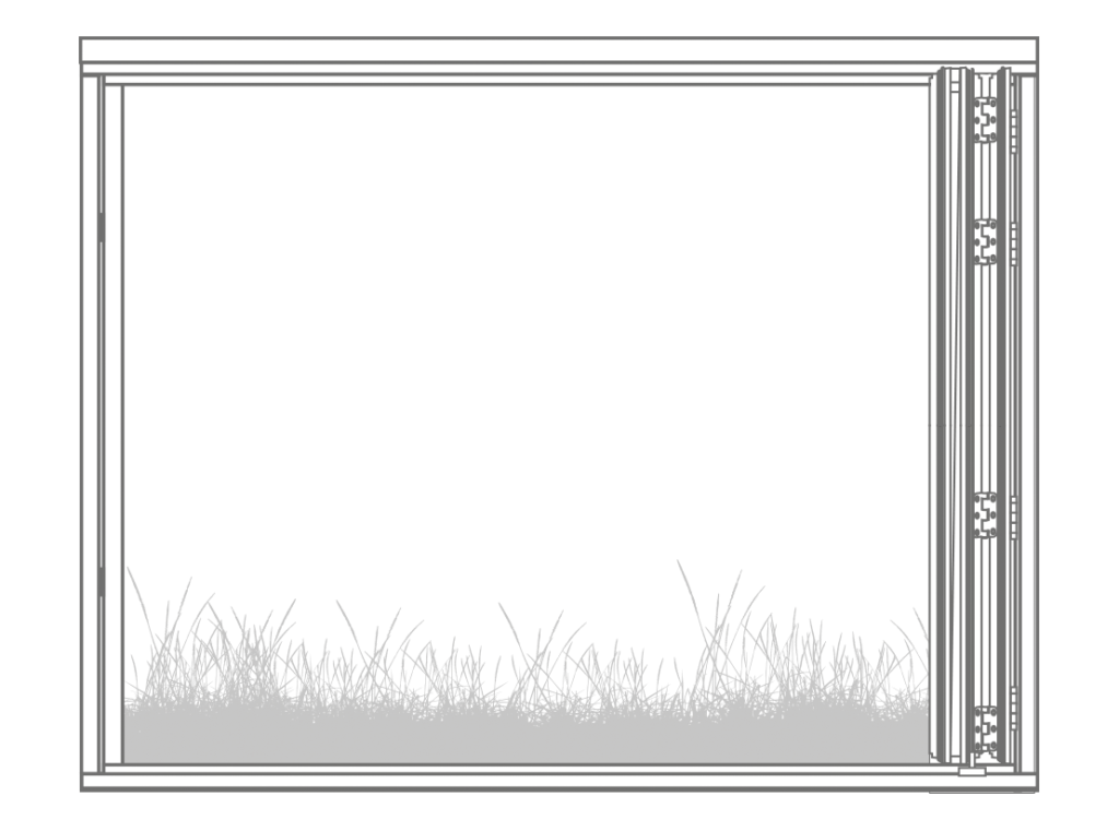 Lacuna’s outward-opening folding doors are made to measure, from 1.5 m up to 6 m in width and with a maximum height of 2.8 m. The individual door panels can be up to 100 cm wide. Lacuna folding doors are available in configurations with 3 to 9 panels and offer many different options for the placement of the access door. For renovation and conversion projects, it is important to ensure that the building’s structure is designed for—or can be adapted to—the chosen solution.