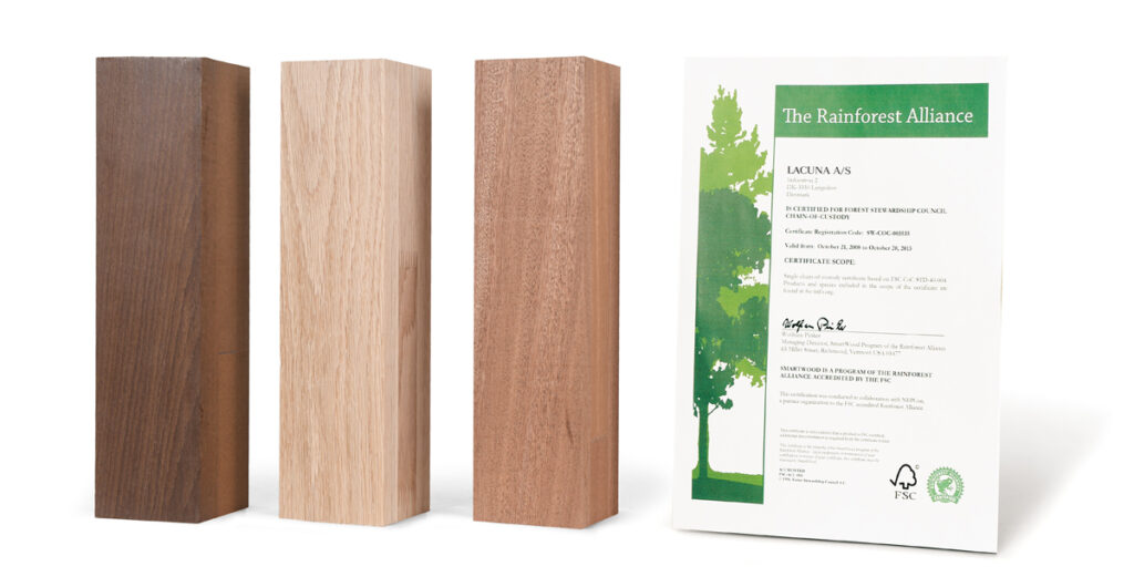 FSC Certificeret sapeli mahogni og europæisk eg kan også fås olieret med mange forskellige farvetoner uden TMT Composite® behandling.